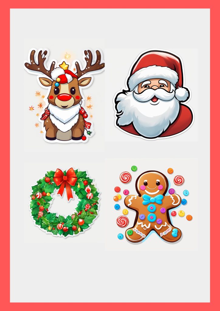 🎄Prepare-se para uma atividade super divertida! Com essas figurinhas de Natal, você pode decorar cartões, presentes e enfeites.