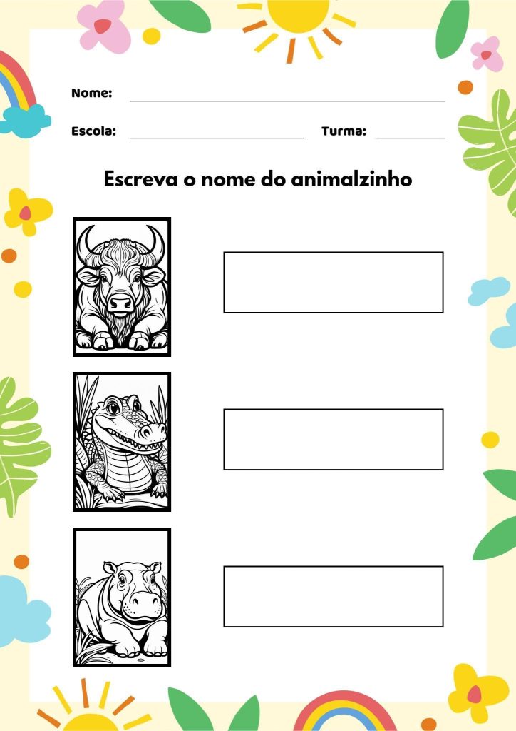 Viajando pela Vida Selvagem: Nomeie Cada Animal! Alfabetização, Palavras Olá, professores incríveis! Vamos explorar o mundo dos animais de forma educativa e super divertida!Com cada atividade, as crianças poderão praticar a escrita e reforçar o reconhecimento dos sons iniciais e das sílabas.Vamos nessa? Download Download Download Download Download Download Tags:conteúdos