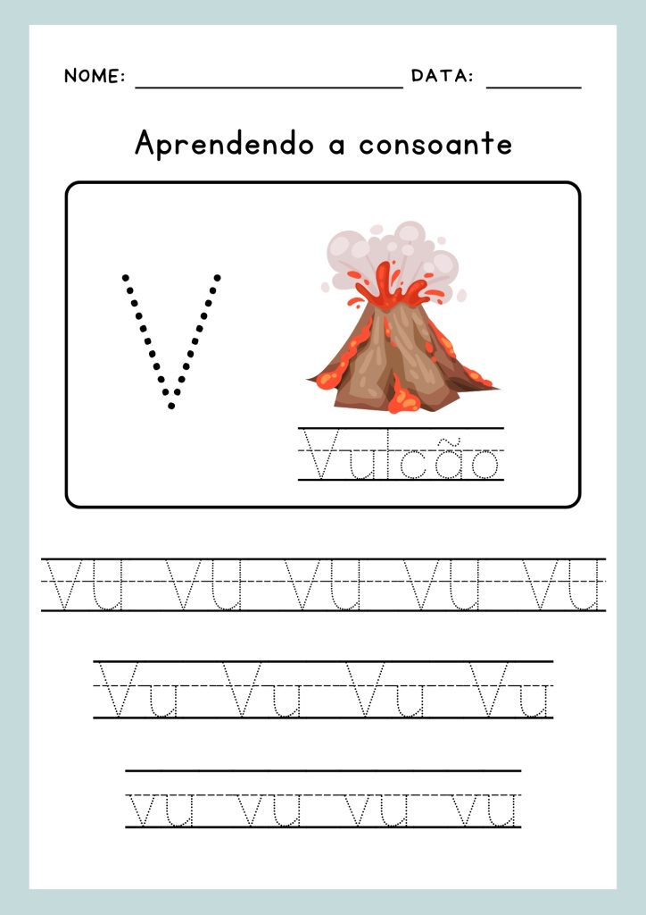 Atividade de consoantes com a letra v Alfabetização, Consoantes Vamos aprender com a letra V! Nesta atividade, as crianças vão praticar a letra V e as sílabas va, ve, vi, vo, vu. Vamos explorar palavras que começam com essas sílabas e brincar com sons e combinações. Preparados para mergulhar no mundo da letra V? Download Download Download Download Download Tags:atividades lúdicasletra vsílabas vasílabas vesílabas visílabas vosílabas vuvocabulário infantil