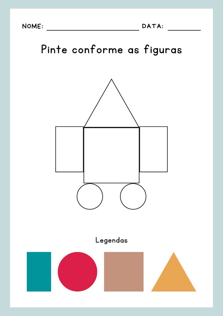 Atividade: Pinte os desenhos conforme as figuras Alfabetização, Formas Geométricas Vamos pintar os desenhos conforme as figuras geométricas! Agora, a missão é observar cada figura geométrica e pintar os desenhos de acordo com elas. Usar a cor certa para cada forma vai ser muito divertido! Preparados? Download Download Download Download Download Tags:aprendizado de formasatividades de artesatividades para criançascolorir figuras geométricasdesenho infantildesenhos coloridosdiversão com coreseducação artísticapintar formas geométricas