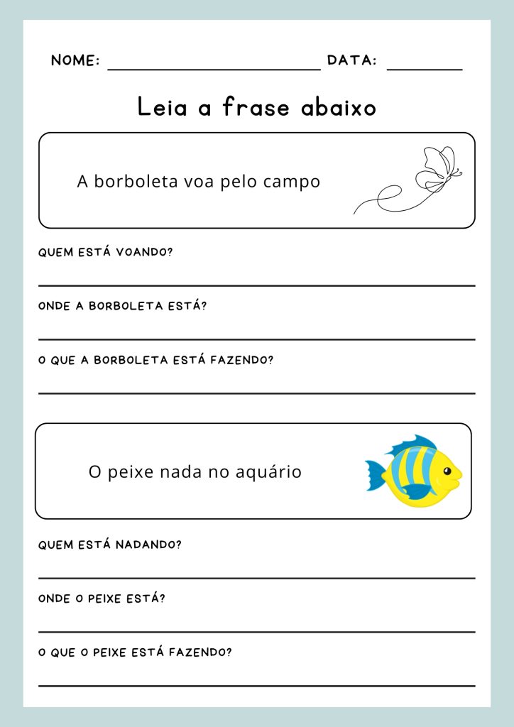 Atividade: Compreensão de texto com figuras Alfabetização, Compreensão de Texto Vamos Ler e Interpretar! ️ Nesta atividade, você vai praticar a compreensão de texto associando histórias ou descrições às figuras correspondentes. Este é um ótimo exercício para melhorar a leitura e a interpretação. Vamos começar? Download Download Download Download Download Tags:aprendizado infantilatividade de leituraatividade pedagógicacompreensão de textoexercício interativohabilidades cognitivasinterpretação de figurasleitura ativa