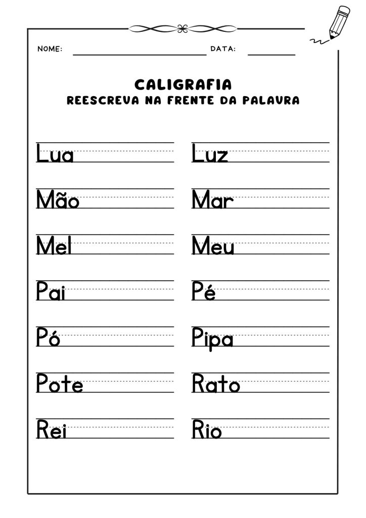 ✍️ Atividade de Caligrafia: Reescreva as Palavras e Aprimore sua Escrita! 📖