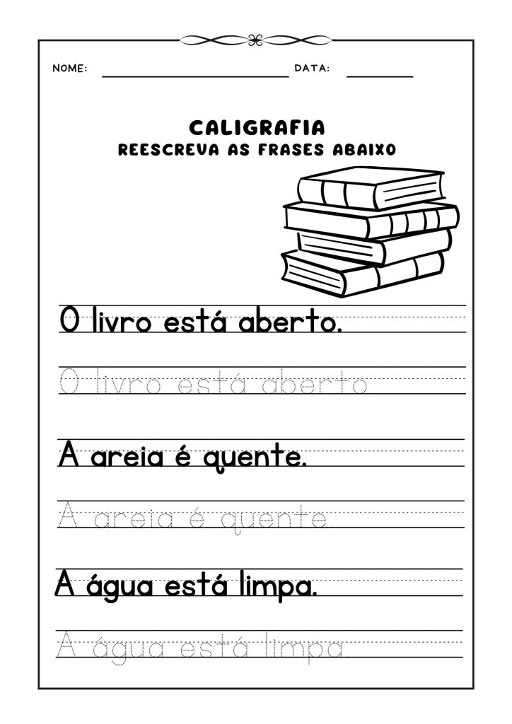 ✍️ Caligrafia: Reescreva as Frases – Parte 2 📖 Alfabetização, Caligrafia ✏️ Caligrafia: Reescreva as Frases! 📖Pratique a beleza da escrita com esta atividade de caligrafia! Nesta parte, as crianças terão a chance de reescrever frases, melhorando sua habilidade de traçar letras e expressar suas ideias de forma clara e artística. Download Download Download Download Tags:caligrafiaCRIANÇASescrever com estiloescrita infantilhabilidades de escritaprática de escritaprogresso na caligrafiareescrever frases