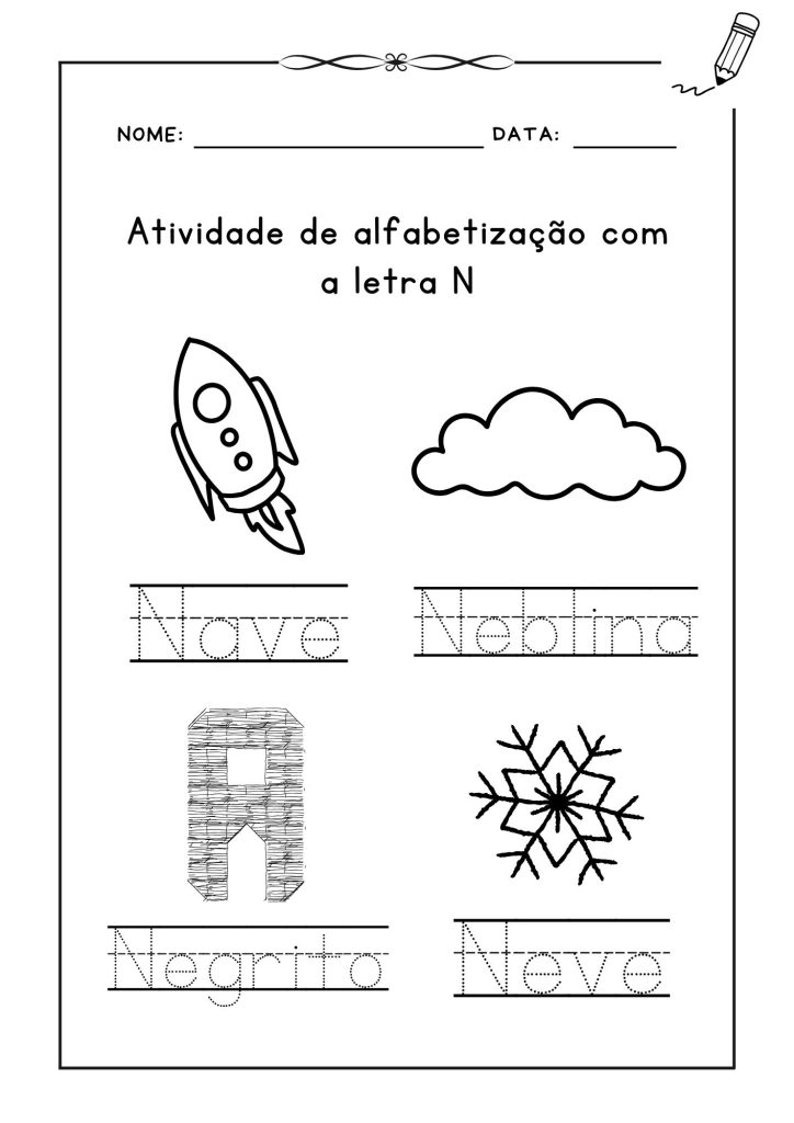 ✍️ Atividade de alfabetização com a letra N 📖 Alfabetização, Alfabeto Vamos explorar a letra N! Esta atividade ajuda as crianças a reconhecer, escrever e identificar palavras que começam com a letra N, ampliando seu vocabulário e desenvolvendo a habilidade de alfabetização. Download Download Download Download Tags:alfabetizaçãoatividades criançasatividades lúdicaseducação infantilensinar letra nletra npalavras nvocabulario