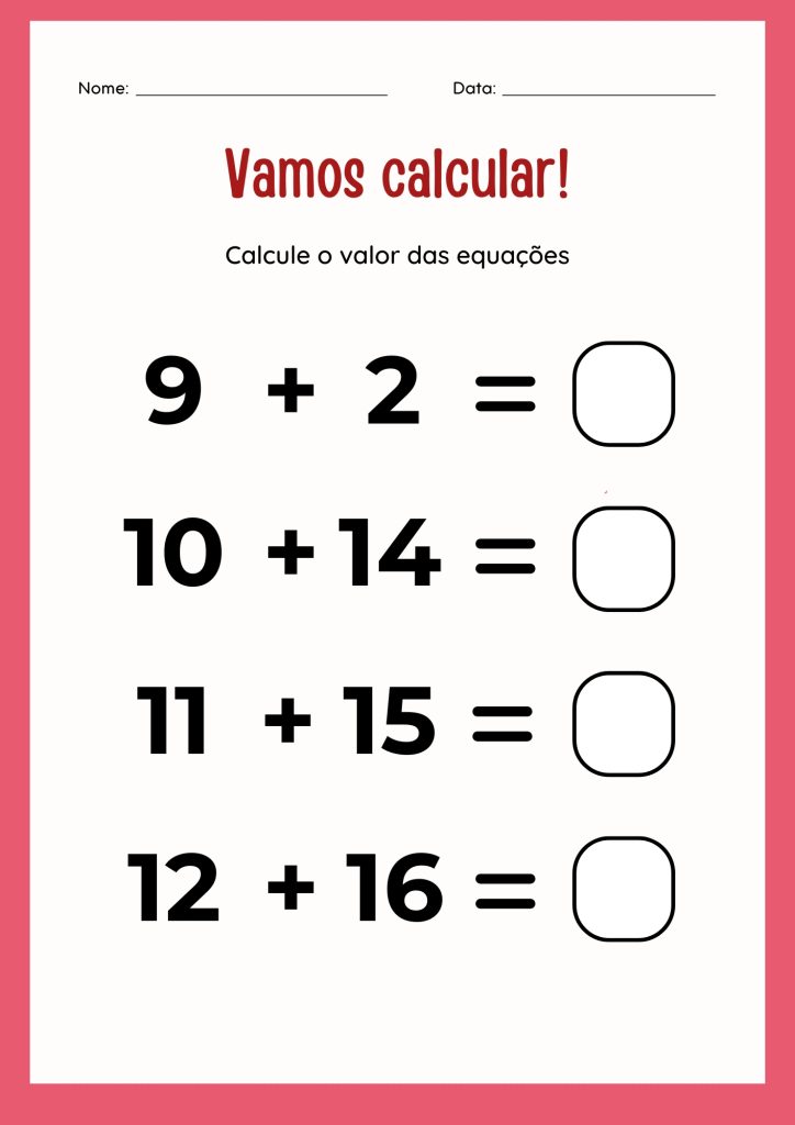 Nesta atividade, vamos nos divertir resolvendo operações de soma com números! Cada desafio é uma chance de melhorar nossas habilidades matemáticas e descobrir como os números podem ser fascinantes. Pegue seu lápis e vamos começar a somar!
