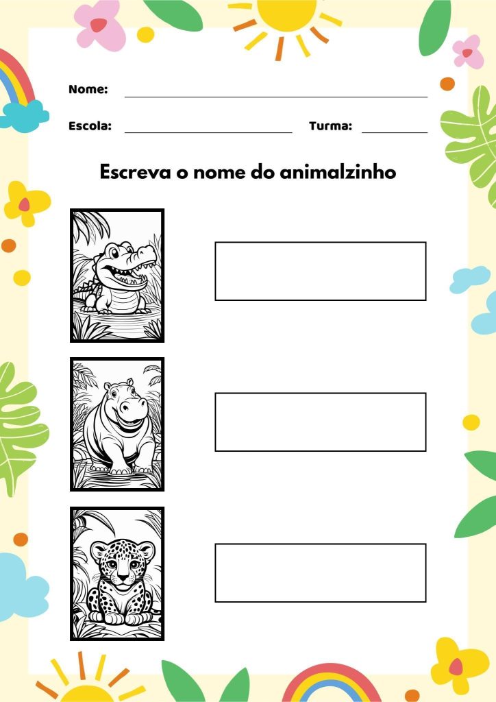 Olá, professores incríveis! Aventuras na Natureza: Descubra o Nome dos Animais Selvagens!Hoje vamos explorar o mundo dos animais de forma educativa e super divertida! Com cada atividade, as crianças poderão praticar a escrita e reforçar o reconhecimento dos sons iniciais e das sílabas.